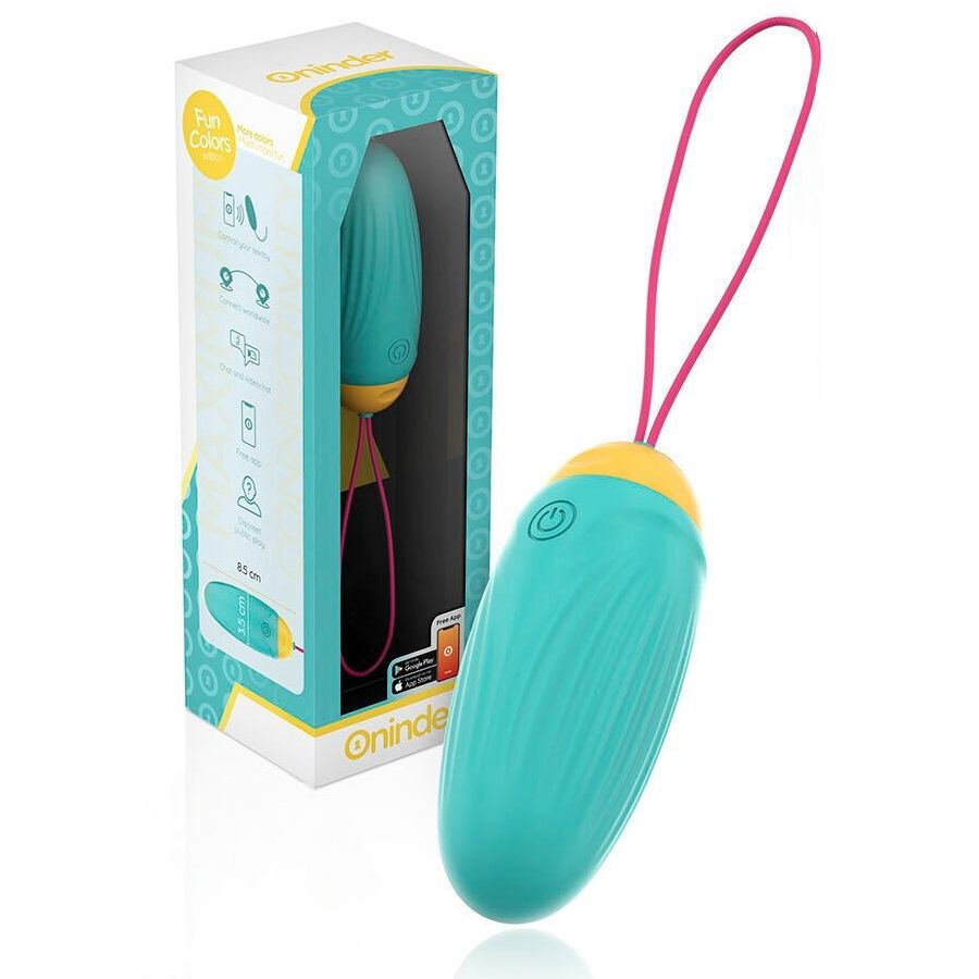 Бирюзовое виброяйцо с ротацией и управлением через приложение
