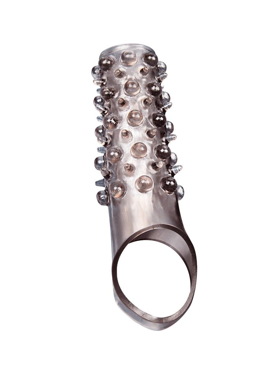 Дымчатая насадка на пенис с шипами и выпуклостями - 12 см.