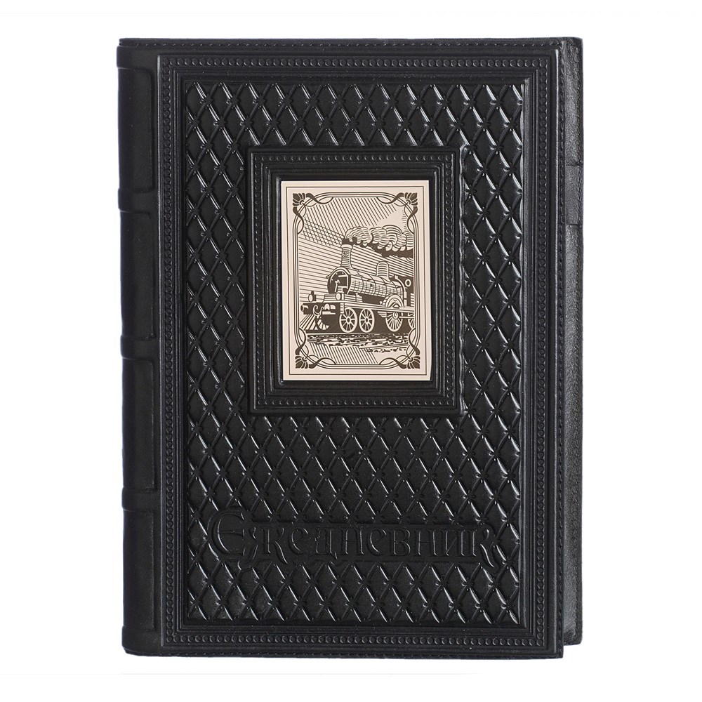 Эксклюзивный ежедневник «Железнодорожнику» от студии «Макей» идеально подходит для ведения различных записей или детального планирования задач. Уникальная модель премиального качества гармонично сочетает традиции древних мастеров, современные качественные материалы и креативные идеи высококлассных специалистов. Эстетичная дизайнерская накладка с изображением паровоза получена методом гравировки, которая выполнена на листе латуни с нанесением никелевого покрытия. Оригинальная текстурированная обложка из мягкой телячьей кожи натурального дубления является результатом филигранной ручной работы. Лицевая и тыльная поверхности украшены эффектным ромбовидным тиснением, а срез блока имеет трехстороннее золотое тонирование.