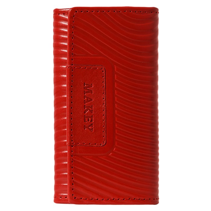 Футляр для ключей из натуральной кожи в интересном дизайне с тиснением в виде волны закрывается на клапан с магнитной кнопкой и имеет 6 креплений-карабинов для ключей.