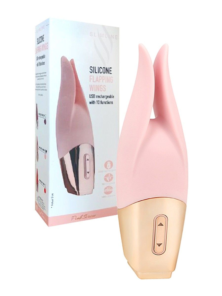 Нежно-розовый мини-вибратор с раздвоенным кончиком - 12,3 см.