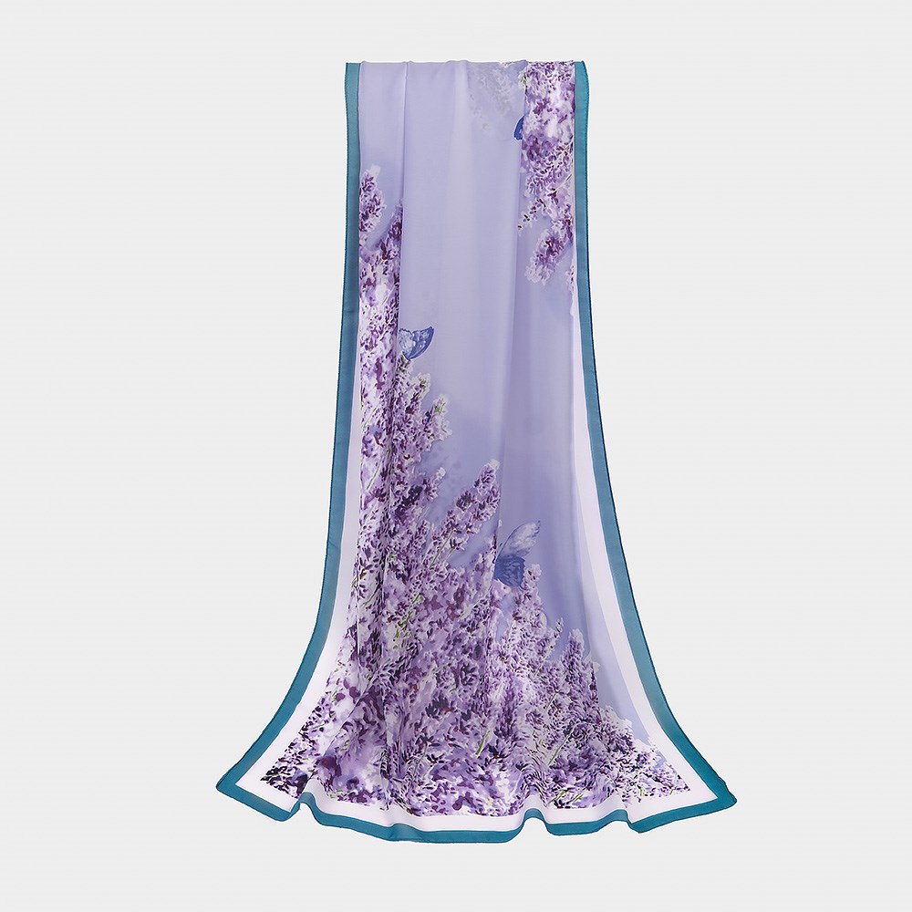 Палантин из креп-сатина с рисунком | Большой шелковистый платок, цвет фиолетовый, 185х90 см