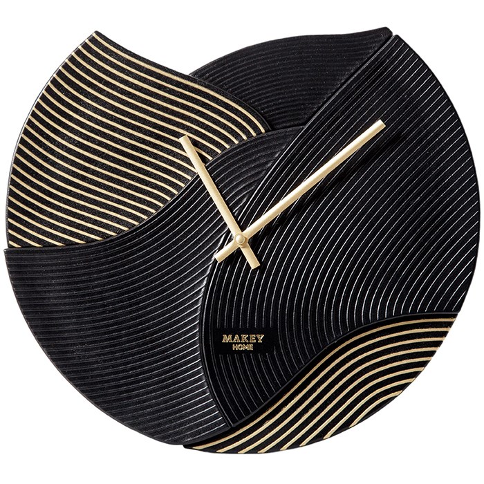 Часы из натуральной кожи черного цвета с тиснением в виде волн и золотым напылением созданы стать изюминкой интерьера вашего дома или офиса.