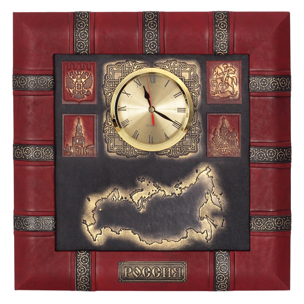 Сегодня настенные часы - это скорей неотъемлемая составляющая интерьера, чем необходимость. Ценителям национального колорита придутся по душе часы, выполненные в российском стиле. Цветовая гамма часов соответствует цветам национальной символики; а тиснение с изображением контуров России поддерживают национальную тематику. Такие часы украсят ваш рабочий кабинет и станут, безусловно, запоминающимся подарком для представителей официальных делегаций из других стран.