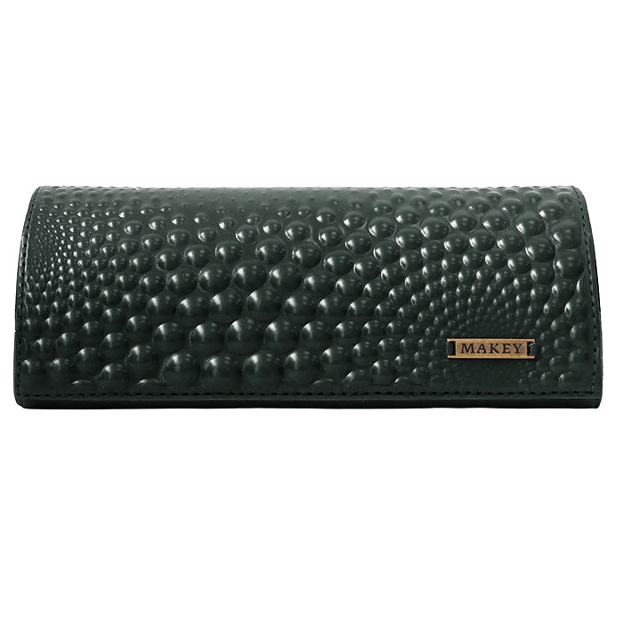 Кожаный футляр для очков с объёмным тиснением в виде пузырьков разного диаметра. Открывается вверх и обеспечивает быстрый доступ к вашему аксессуару.