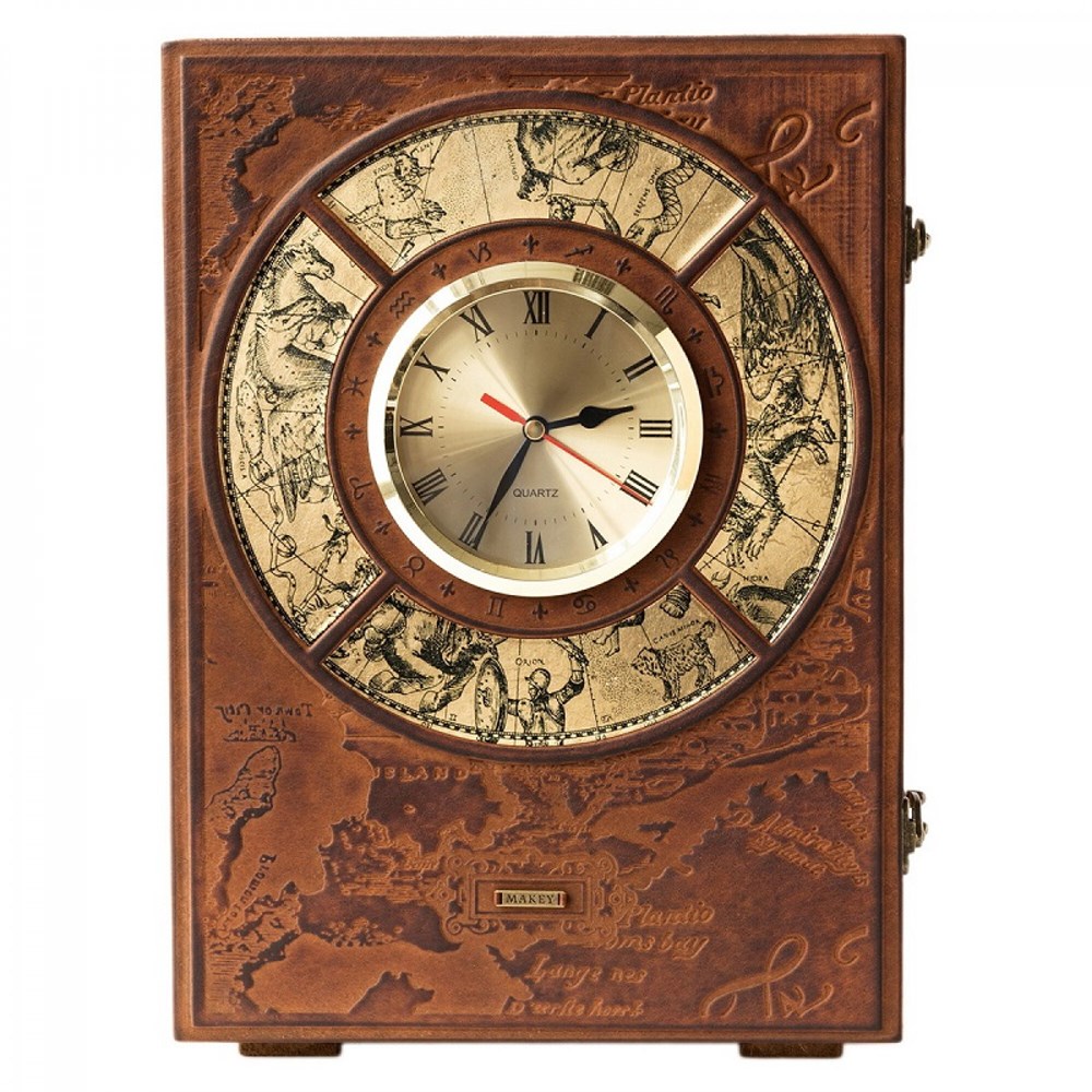 Бар с часами из натуральной кожи - обычная на первый взгляд книга, скрывающая в себе приятный сюрприз. Это идеальный подарок, который произведет неизгладимое впечатление на ценителей крепких напитков. Такой мини-бар можно разместить и в рабочем кабинете, и в квартире. Стилизованные старинные часы напомнят о времени приема гостей, а любимый напиток в хрустальном графине терпеливо дождется прихода приятной компании.