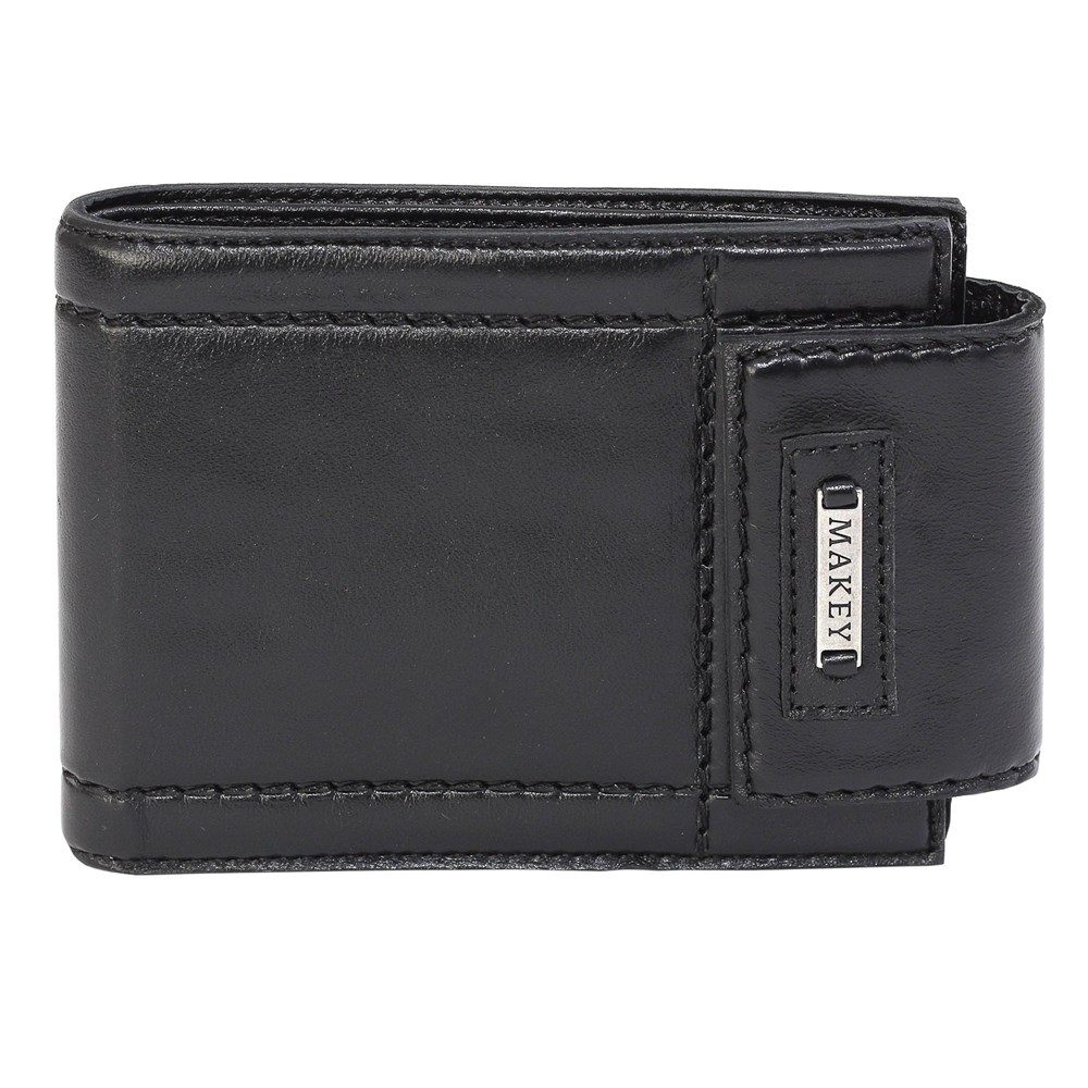 Качественный кошелек из натуральной кожи - это не просто аксессуар для хранения денег. Это часть нашего гардероба, элемент имиджа.Предлагаемая модель кошелька в два сложения закрывается на клапан с двумя парами вшитых магнитов. Имеет отделения под бумажные купюры, секции для кредитных и дисконтных карт, потайной кармашек. Изделие имеет строгий лаконичный дизайн, прекрасно подойдет успешным деловым людям, кто привык принимать быстрые и правильные решения, для кого время - деньги. А деньги, как известно, приятно хранить в качественном и надежном кошельке. Он украшен декоративной строчкой и металлической художественной вставкой с гравировкой бренда Makey. Внутри него есть все отделения для хранения кредитных карт, купюр, потайной карман и кармашек для мелочи. Данный кошелек предназначается не только для хранения денег и кредитных карт. С его помощью формируется восприятие владельца другими людьми – его вкус, статус и достаток.
