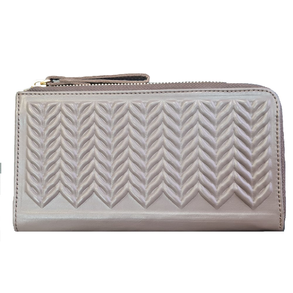 В предлагаемой модели портмоне бумажные купюры не сгибаясь размещаются в трех отделениях. Предусмотрено отделение на молнии для мелочи, секции для кредитных карт, а также отделения для мелких бумаг. Портмоне застегивается на молнию.