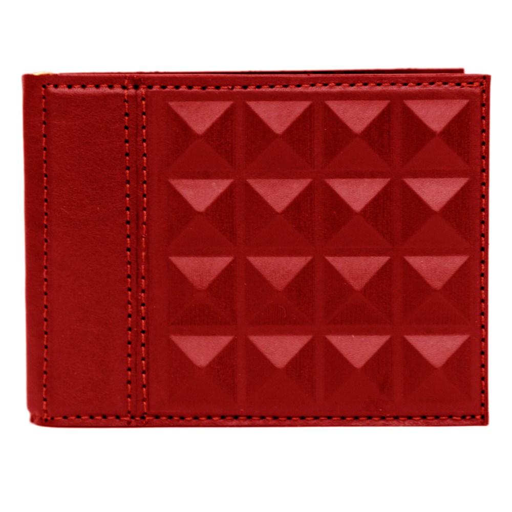 Зажим из натуральной кожи с геометрическим объёмным тиснением с откидным механизмом, 2 отсека для кредитных карт и сзади карман для монет на магнитном клапане.