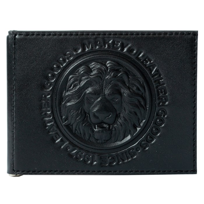 Зажим для денег с эмблемой в виде головы Льва из натуральной кожи и откидным механизмом, 2 отсека для кредитных карт и сзади карман для монет на магнитном клапане.