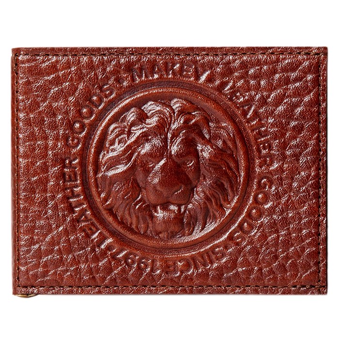 Зажим для денег с эмблемой в виде головы Льва из натуральной кожи и откидным механизмом, 2 отсека для кредитных карт и сзади карман для монет на магнитном клапане.